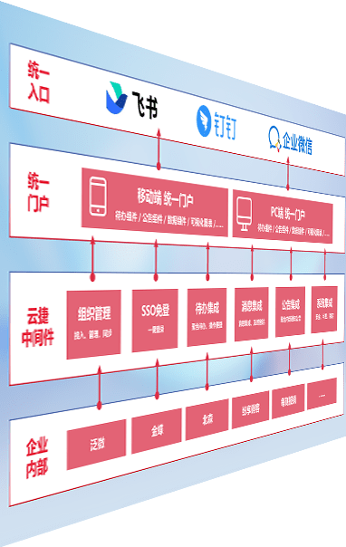 对协作平台提供支持服务,,支持企业应用与协作平台对接,,,,包含组织同步、、、、消息集成、、待办集成等。。。。支持目前主流的协作平台:钉钉、、、、企微和飞书。。